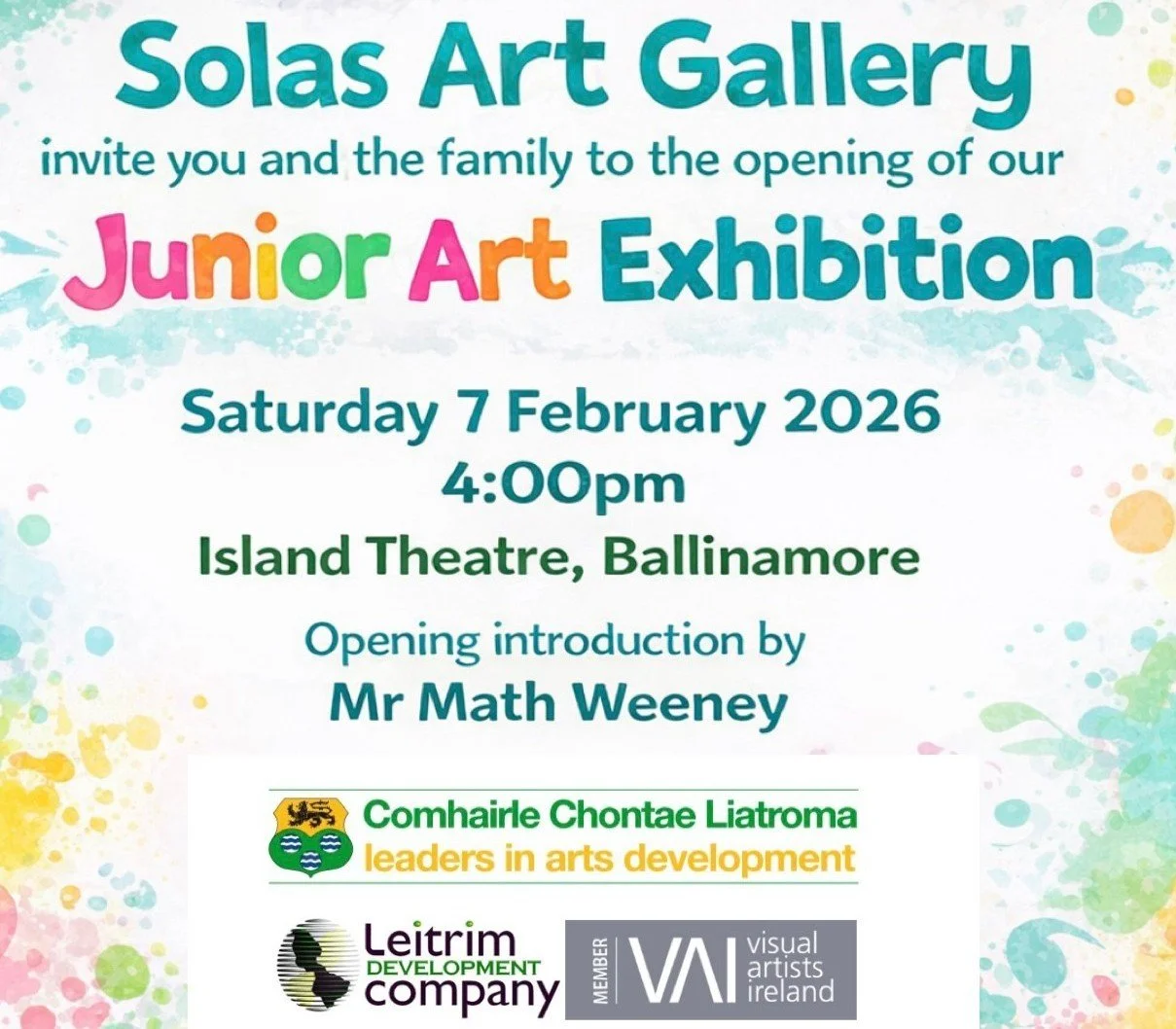 Solas Art Gallery Junior Art Exhibition 2026, Saturday 7th February , introduction by Mr Math Weeney, photography by Dina Ozola.